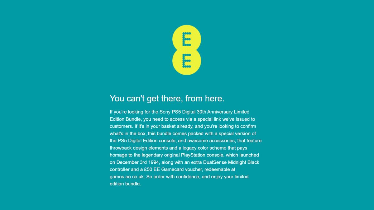 İlginçtir ki bu gerçekten yalnızca metin mesajı davetlerine özeldir; EE Mağazası web sitesinde mobil veya masaüstünde pakete gidemezsiniz. Bunun yerine, “Buraya buradan gidemezsiniz” yazan bir mesajla karşılaşırsınız.