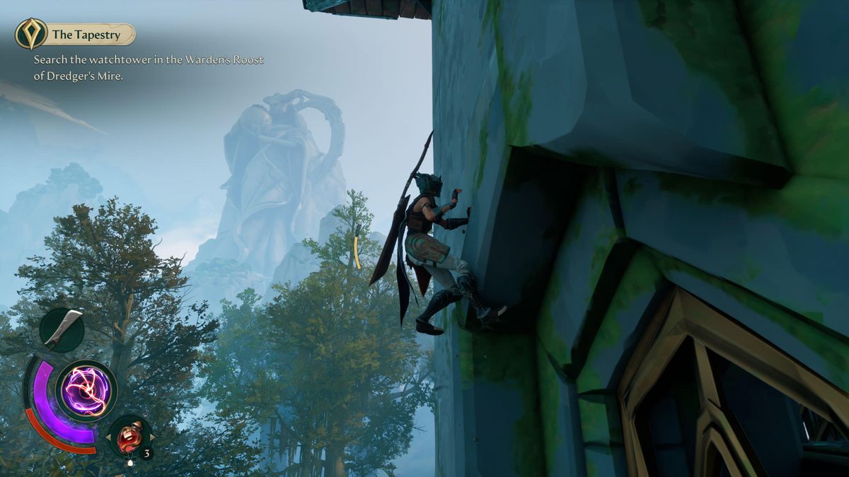 Ancak, ahlaki çıkmazlara takılmak veya ilişkiler kurmak yerine, bu tamamen büyük bir A aksiyon RPG’sidir ve modern The Legend of Zelda‘nın serbest tırmanma ve fizik tabanlı parçalama ile Shadow of the Colossus‘taki devasa karşılaşmaların karışımına sahiptir. Ve ilham aldığı oyunların aynı yüksekliklerine ulaşmasa da, sihirli unsurlarla nasıl etkileşimde bulunduğunuzda benzersiz bir şey sunar.