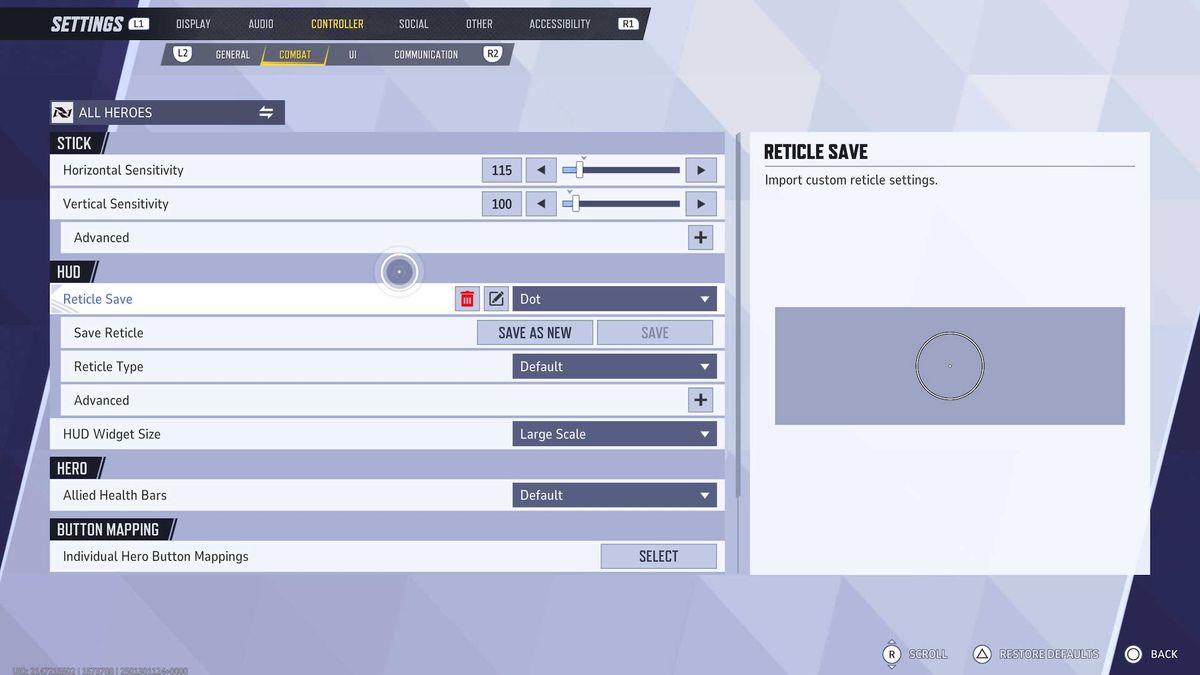 Aklınızda bulundurmanız gereken bir ayar “Nişangahı Kaydet” seçeneğidir. Bu, her bir Kahraman için değişik nişangahları kaydetmenizi sağlar. Belirli bir Kahraman için ayarları özelleştirmek için sadece sol üst köşede “Tüm Kahramanlar”ı seçin ve ardından yeni ayarları uygulamak istediğiniz Kahramana geçin.