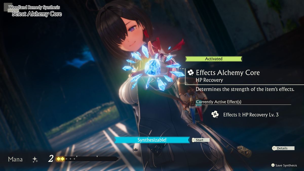 Tüm sentez projeleri, çeşitli türler arasında değişen Alkimik Çekirdeklerden birini temel öğe olarak seçerek başlar – genel bir kalite artışı sağlayan bir tane veya ek özellikler için yuvalara izin veren başka bir tane gibi. Ardından, çekirdeğin rezonans alanını genişletmeye yardımcı olacak malzemeler eklersiniz. Bu alan ne kadar büyük olursa, sürüklenen mana etkisinde yakalanan mana o kadar fazla olur. Topladığınız mana ne kadar fazla olursa, öğenin kalitesi o kadar büyük olur, böylece genel etkisini artırır. Ayrıca, daha yüksek sınıf malzemeler kullanarak herhangi bir öğenin potansiyel gücünün tavanını genişletebilirsiniz.