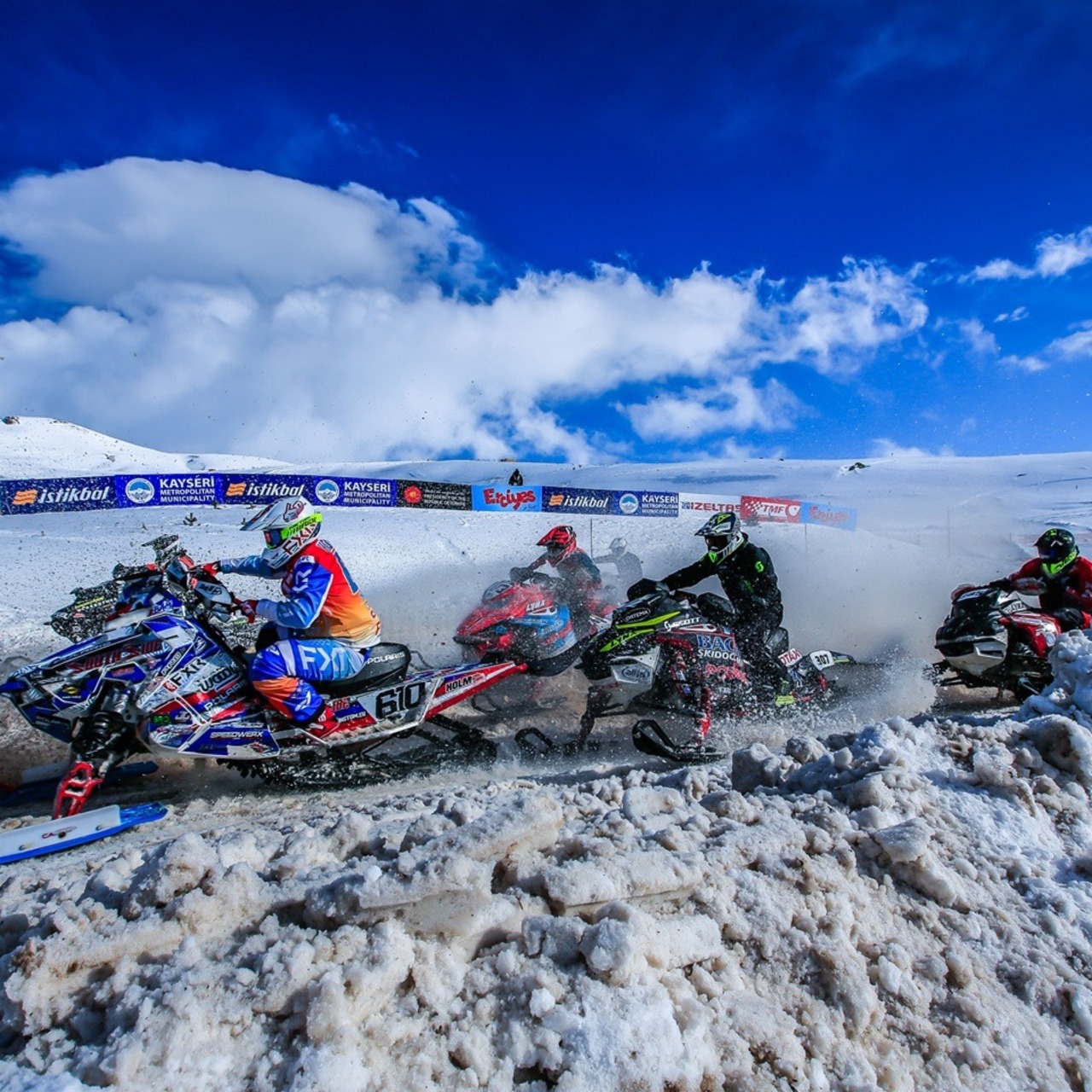 Türkiye’ye gelen dünyaca ünlü snowcross yarışçıları, Erciyes’te düzenlenen organizasyonla start aldı. Erciyes, Uluslararası Motosiklet Federasyonu (FIM) tarafından en prestijli ekstrem spor organizasyonları arasında gösterilen Dünya Kar Motosikleti Şampiyonası’na (SNX Türkiye) ev sahipliği yapıyor. Yarış, 770 metrelik pistte sıralama turlarıyla başladı.