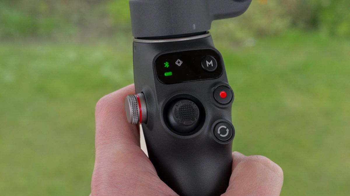 Gimbal’ın yerleşik kontrolleri temelde Osmo Mobile 6’nınkilerle aynıdır, manuel gimbal hareketini destekleyen bir baş parmak çubuğu ve manuel odak çekme ve pürüzsüz yakınlaştırma sağlayan bir tekerlek bulunmaktadır. Ayrıca mod değiştirme, kayıt başlatma/durdurma ve ön ve arka kameralar arasında veya yatay/dikey telefon yönelimi arasında geçiş yapmak için düğmeler bulunmaktadır. Ön tetikleyici, mevcut gimbal açısını sabitlemek için basılı tutulabilir veya iki kez dokunularak açıyı varsayılanına sıfırlayabilir. Benim için hepsi iyidir.