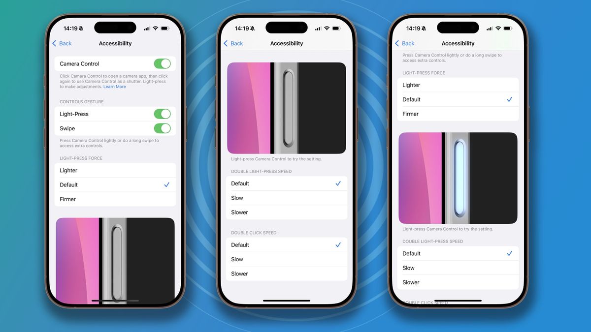 Hangi seçenekleri tercih ettiğinizi emin değilseniz, Apple’ın seçtiğiniz değişikliklerin nasıl hissettirdiğini görmek için kullanışlı, etkileşimli bir test görüntüsü eklediğini unutmayın. Ayarları ayarlayarak ve ardından iPhone’unuzdaki Camera Control’a basarak değişikliklerinizden sonra ne kadar kuvvet ve hız gerektiğini gösteren görüntüdeki Camera Control ışıldayacaktır.