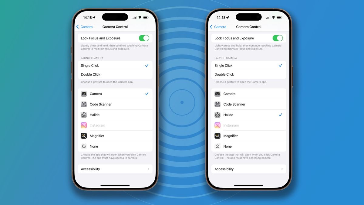 Temel durumunda, Camera Control Apple’ın kendi Kamera uygulamasını açar, ancak tercih ederseniz, üçüncü taraf bir kamera uygulamasını başlatmasını sağlayabilirsiniz.